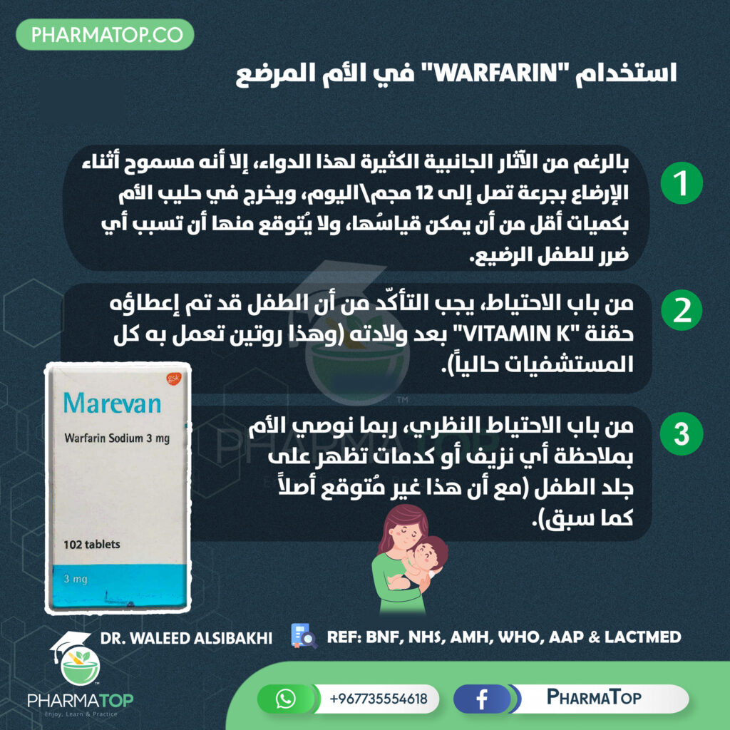 الكل يخاف من “الورفارين” .. ولكن لو اضطرت لاستعماله أم مرضع فهل هو فعلاً ممنوع، وهل يجب أن تقطع الرضاعة الطبيعية lactationpharmacologypharmatopwarfarinأدوية المرضع Share this post “Spironolactone” in Pregnant & Lactating Women How to Use the Most Common “Asthma Inhaler” ?? Related PostsCodeine is NOT Safe in Breastfeeding Women21/10/2024Colchicine Usage in Breastfeeding Women19/10/2024Safe “Paracetamol” Dose for “Warfarin” Users18/11/2024