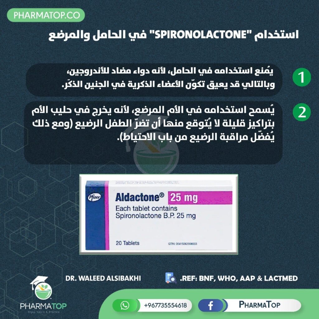 قد يكون الدواء آمناً للحامل ولكنه خطير على الأم المرضع – إو العكس- وهذا مثال واضح جداً على ذلك pharmacologypharmatoppregnancyspironolactoneأدوية الحاملأدوية المرضع Share this post Loperamide Passes the BBB and Causes Adverse Effects !! How to Use “Warfarin” Safely in Lactating Women ?? Related PostsInsulins in Breastfeeding Women06/12/2024Codeine is NOT Safe in Breastfeeding Women21/10/2024Why Do We Consider “Latanoprost” Safe for Breastfeeding Women ??18/11/2024