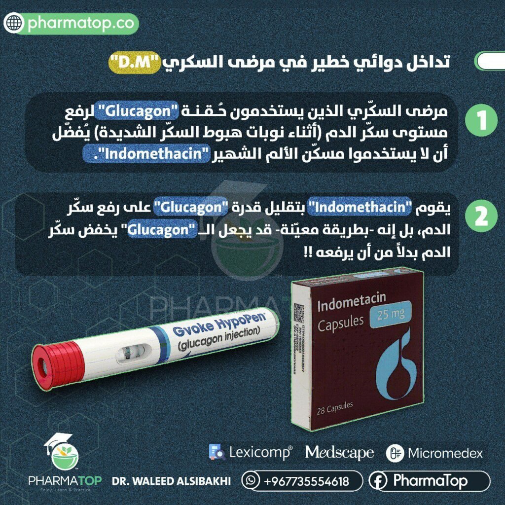 قد تكون مسكنات الألم المفضلة في مرضى السكري هيParacetamol+Low-dose ibuprofen AnalgesicsDrug-drug interactionsGlucagonIndomethacin Share this post Analgesics in Patients with Diverticular Disease Omeprazole (20 mg) in Patients with Renal or Hepatic Impairment Related PostsThe Correct Doses of “Diclofenac Suppositories”04/11/2024Codeine is NOT Safe in Breastfeeding Women21/10/2024Safe “Paracetamol” Dose for “Warfarin” Users18/11/2024